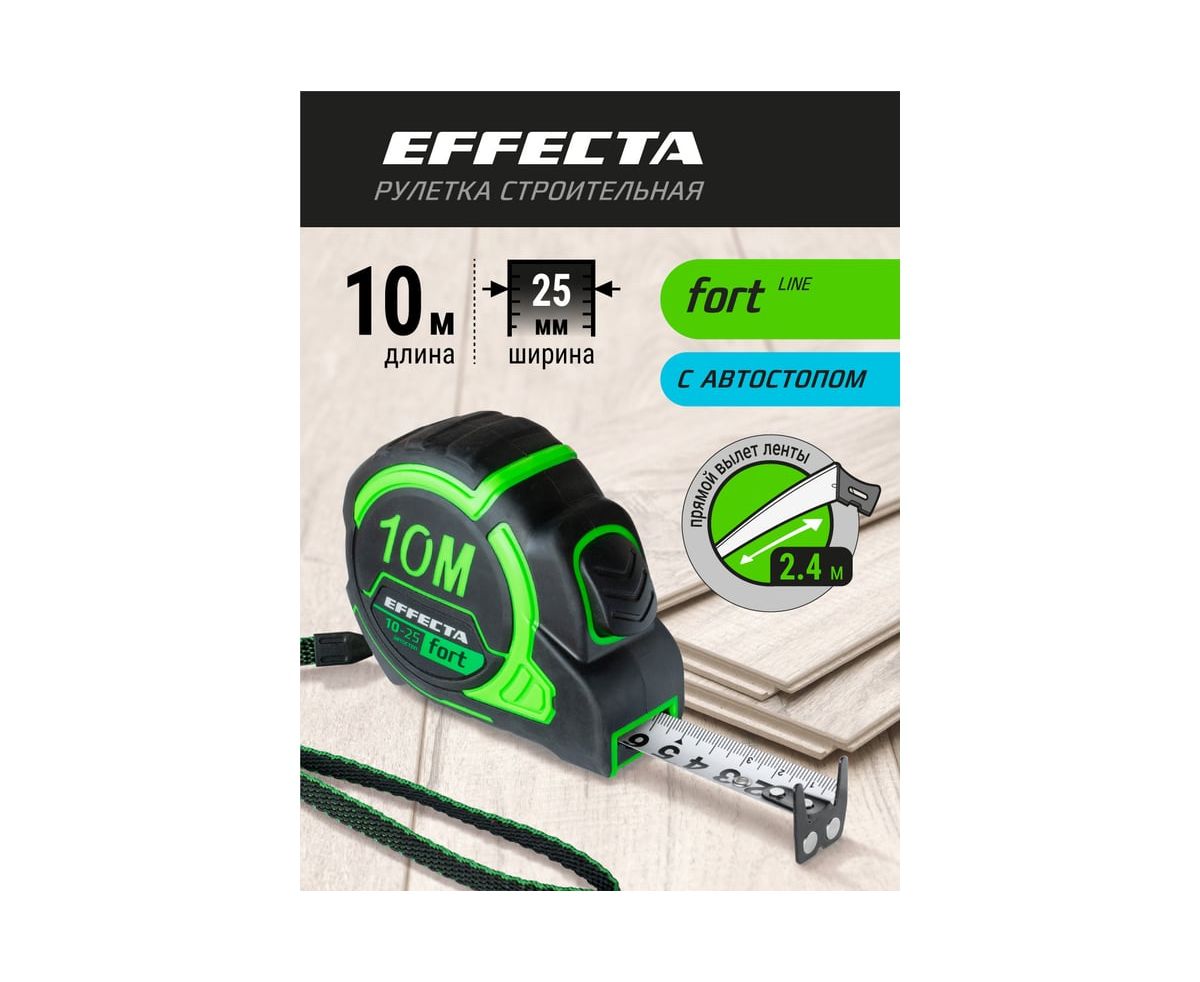 Рулетка EFFECTA Fort 581125 10м/25 мм, магнит, автостоп, лента -2стор шкала- нейлон