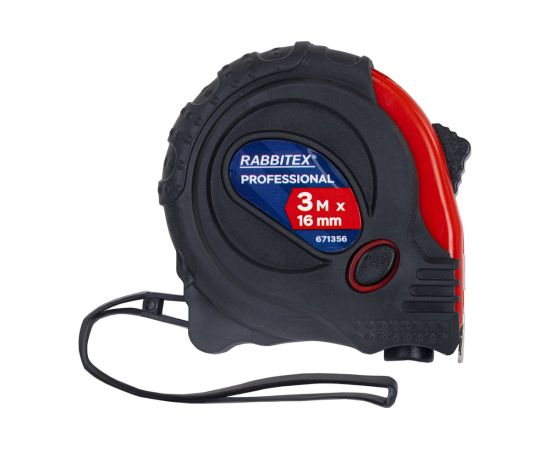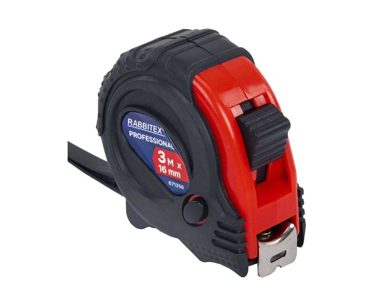Рулетка измерительная RABBITEX 671356 Professional 3м*16мм, обрезиненный корпус, 3 фиксатора