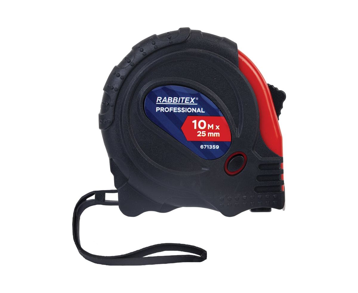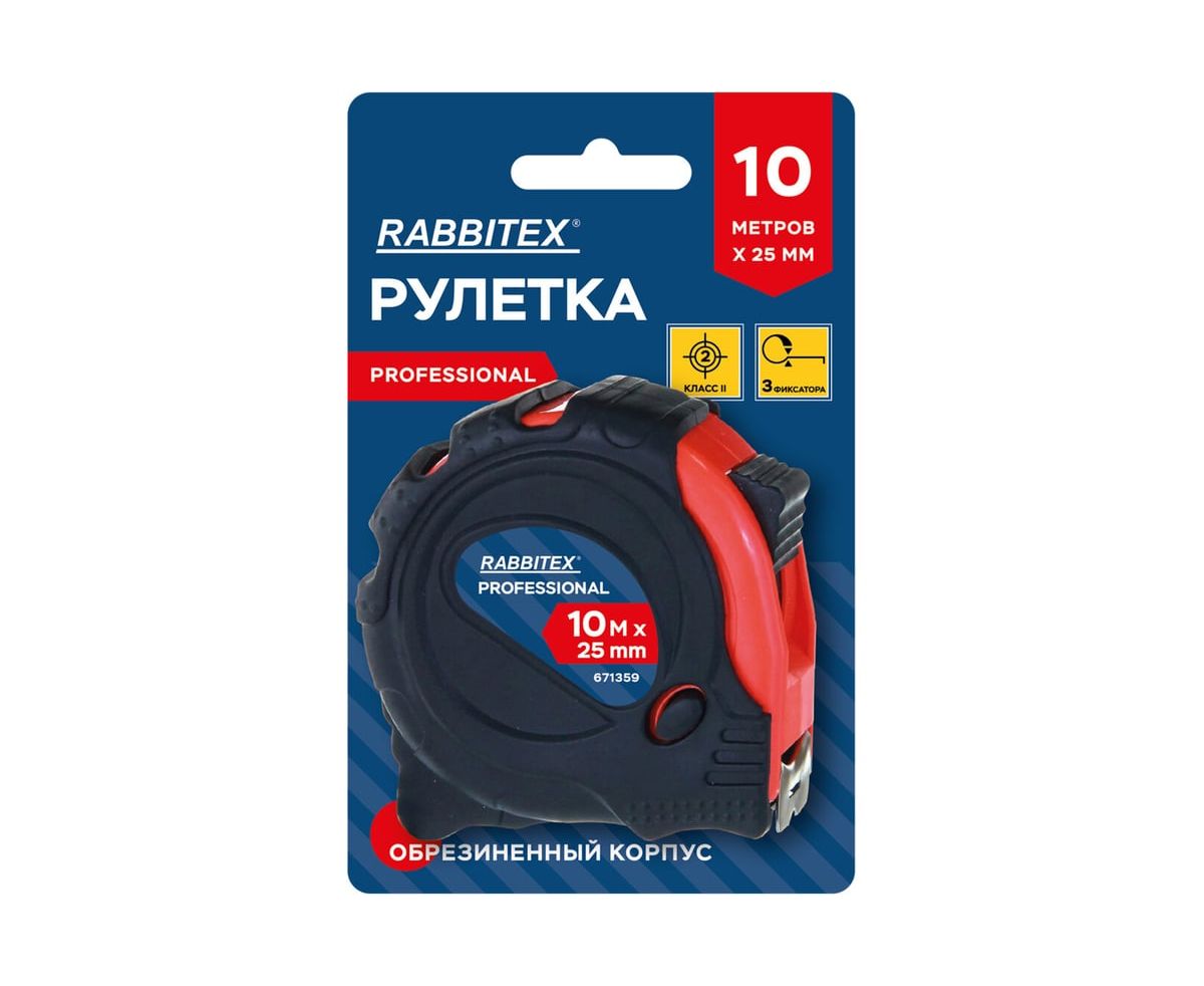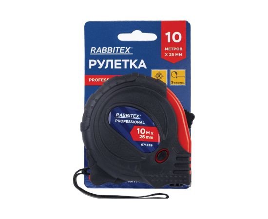 Рулетка измерительная RABBITEX 671359 Professional 10м*25мм, обрезиненный корпус, 3 фиксатора