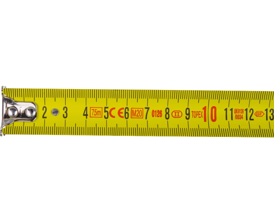 Рулетка TOPEX 27C387 стальная, автоматическая блокировка сматывания ленты, двухкомпонентный корпус, двойной лаковое покрытие