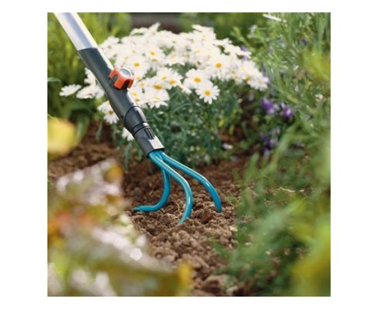 Культиватор для Комбисистемы GARDENA снабжен тремя прочными зубцами, идеально приспособленными для рыхления и аэрации почвы без повреждения корневой системы растений.
