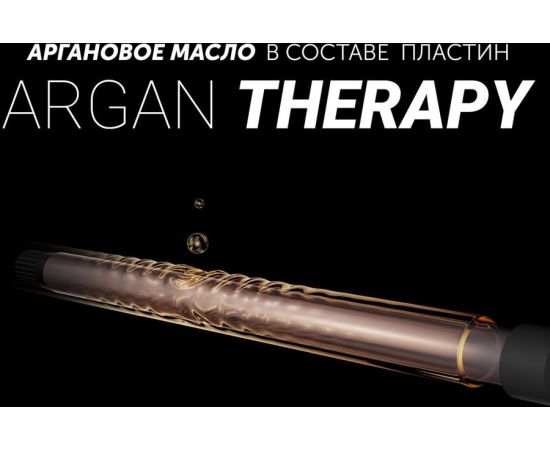 Описание: Профессиональный cтайлер. Argan Therapy – пластины обогащены Аргановым маслом. При нагреве волосы становятся восприимчивы к внешнему воздействию и Аргановое масло внедряется в структуру волос, позволяя им оставаться здоровыми и приобрести естественный блеск.