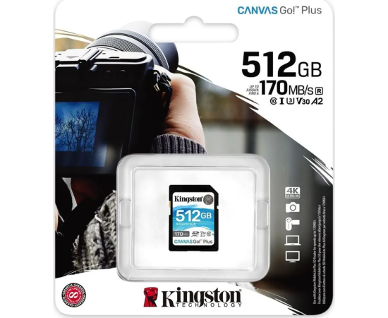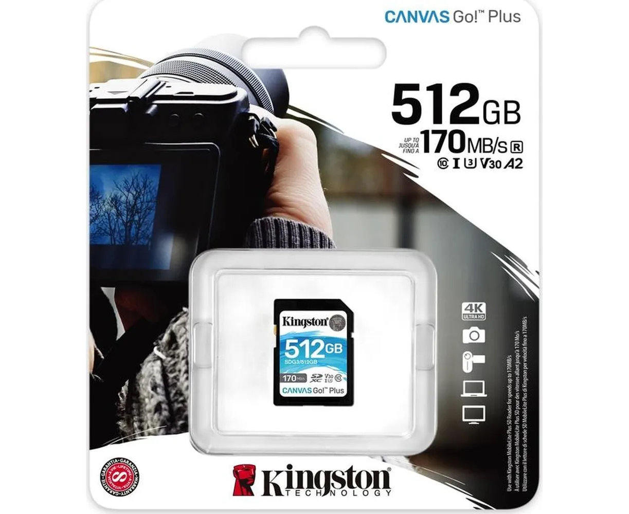 SDXC 512GB Kingston Class 10 UHS-I U3 V30 Canvas Go Plus (170/90 Mb/s)