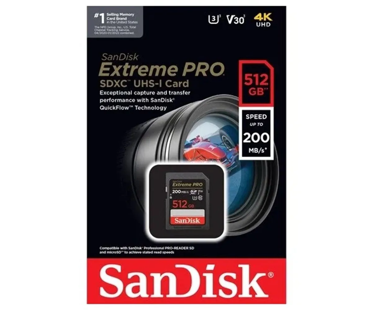 SDXC 512GB SanDisk Class 10 Extreme Pro V30 UHS-I U3 (200 Mb/s)