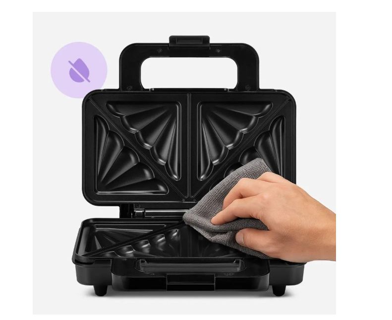 Бутербродница оснащена двумя нагревающимися панелями и позволяет готовить с закрытой крышкой, обеспечивая равномерное обжаривание бутербродов с обеих сторон. Это ускоряет процесс приготовления, исключая переворачивание блюд в процессе готовки.