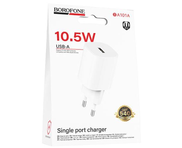 Сетевое зарядное устройство BOROFONE BA101A/ СЗУ/ 1 USB/ Выход: 10.5W/ Белый