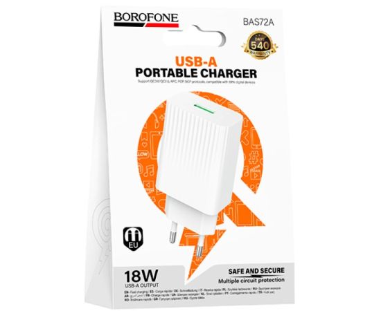 Сетевое зарядное устройство BOROFONE BAS72A/ СЗУ/ QC 3.0/ 1 USB/ Выход: 18W/ Белый