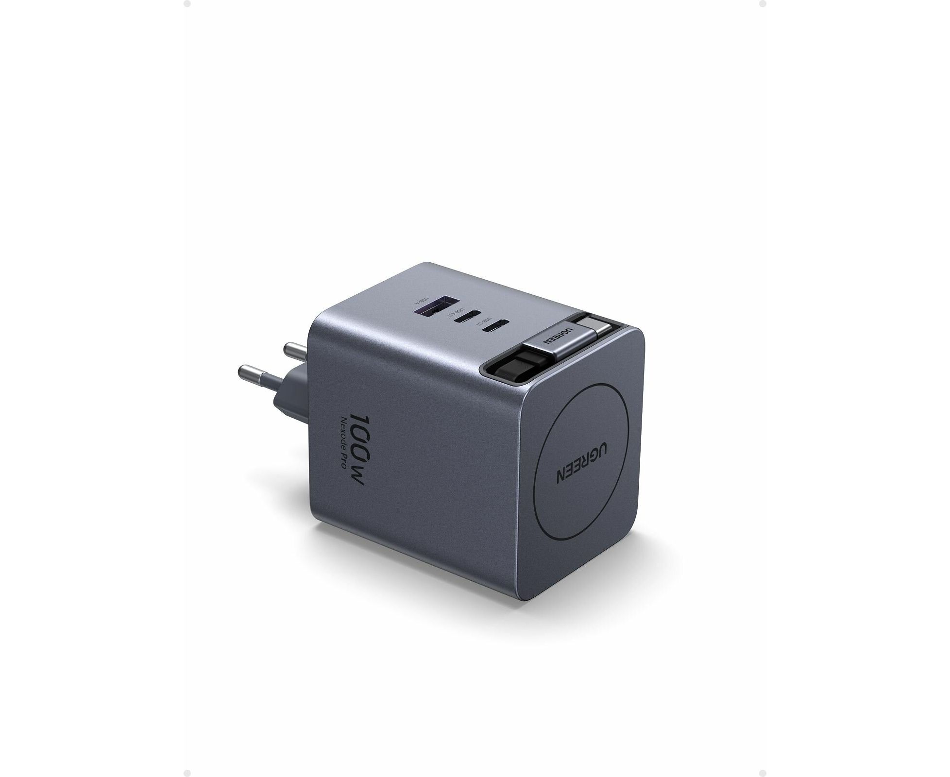 Сетевое зарядное устройство UGREEN X616 (65828) 100W GaN Fast Charger 2*USB-C USB-A with Retractable Cable USB-C серый космос