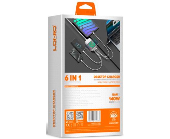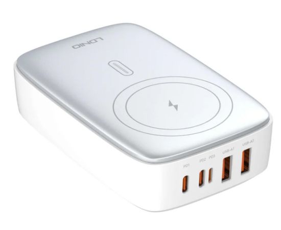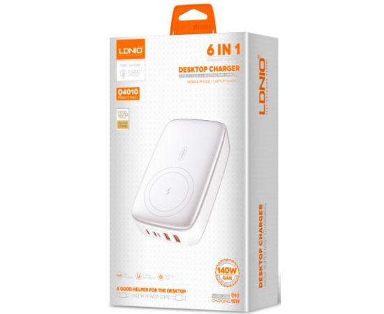 Сетевое ЗУ GaN/ LDNIO Q4010/ Беспроводная зарядка Qi 15W/ PD+PPS/ Выход: 3.3-20V, max 140W/ Серебристый