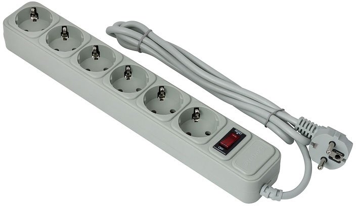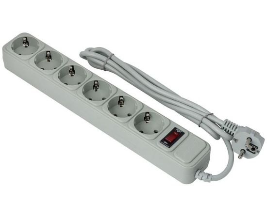 сетевой фильтр, 6 розеток, 1.5 м, серый