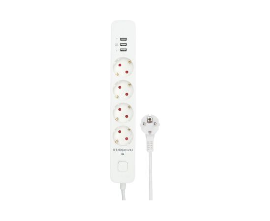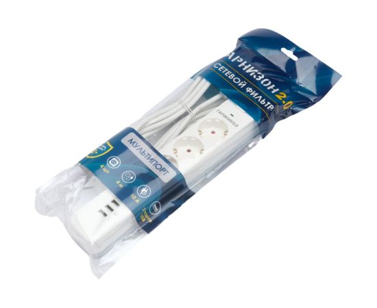 Сетевой фильтр Гарнизон EPS-4-U3-W-4 белый, 4 розетки 220В, 10А, 3 розетки USB-A 5В, кабель 4м, ур.защиты 2+, пакет