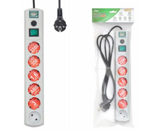 Сетевой фильтр Most LRG 3м (6 розеток) белый (пакет ПЭ)
