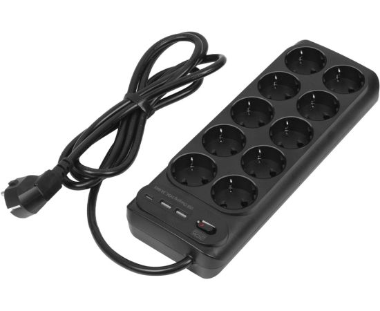 Сетевой фильтр Powercom SP-10 USB2A1СB 1.8м (10 розеток) черный (коробка)