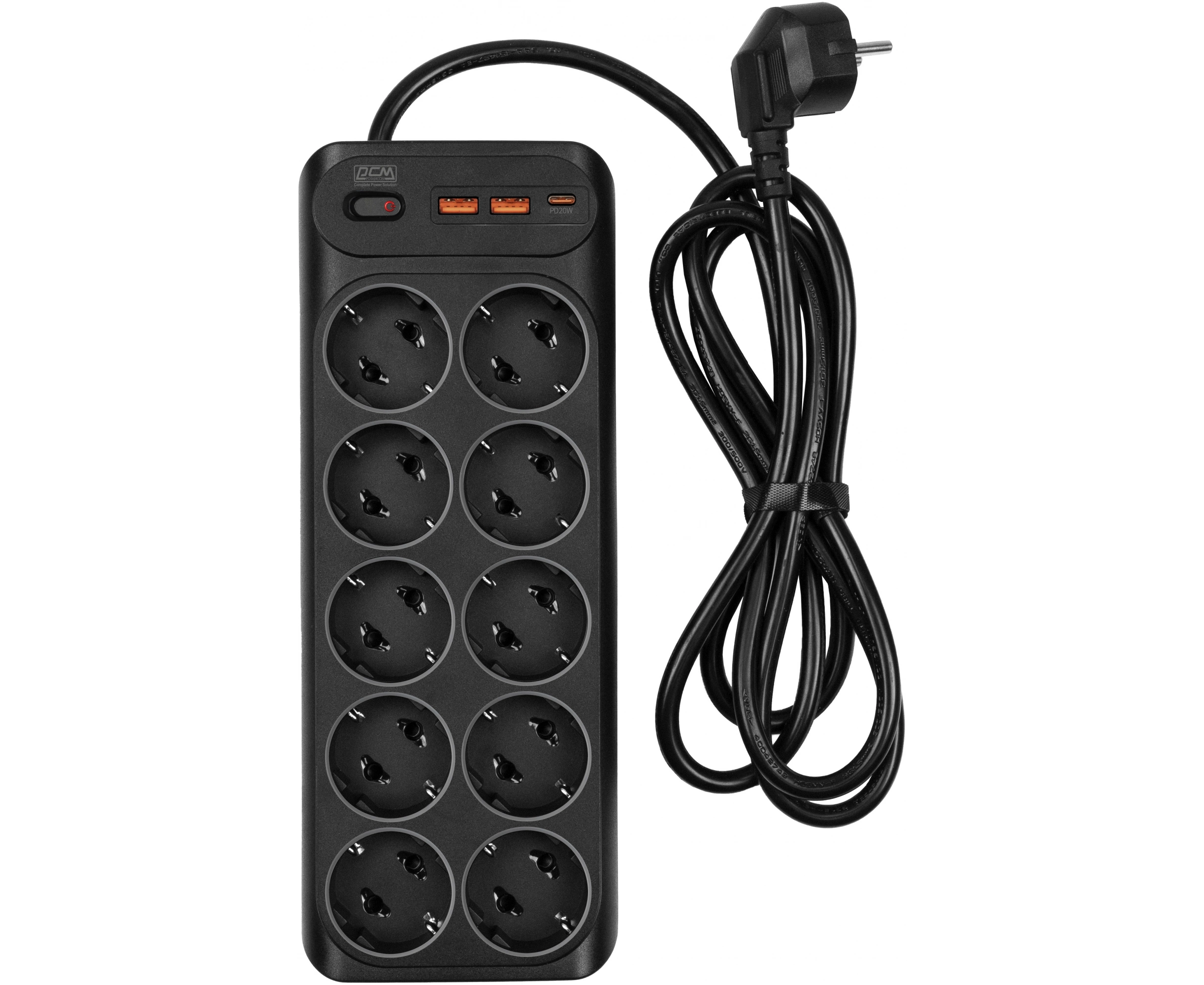 Сетевой фильтр Powercom SP-10 USB2A1СB 3.0м (10 розеток) черный