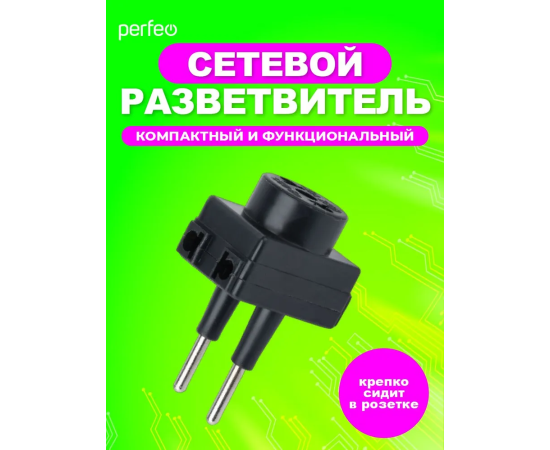Сетевой разветвитель Perfeo "RU POWER'' 3 гнезда, 6А, без заземления, (3ТМ), черный