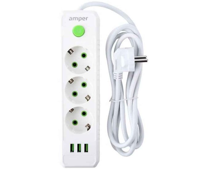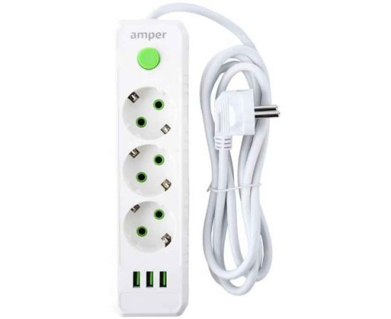 Сетевой удлинитель Amper JH-1031U-4W 4,0м, 3 розетки белый