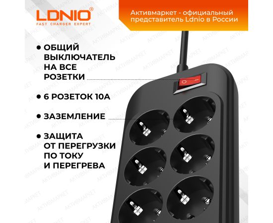 Комплектация Сетевой удлинитель Ldnio SE6403