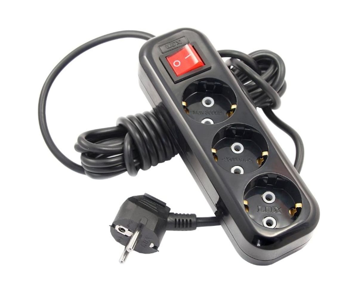 Сетевой удлинитель LUX У3-ЕВК-03 3-местный с з/к (250В/16а/3м) Черный