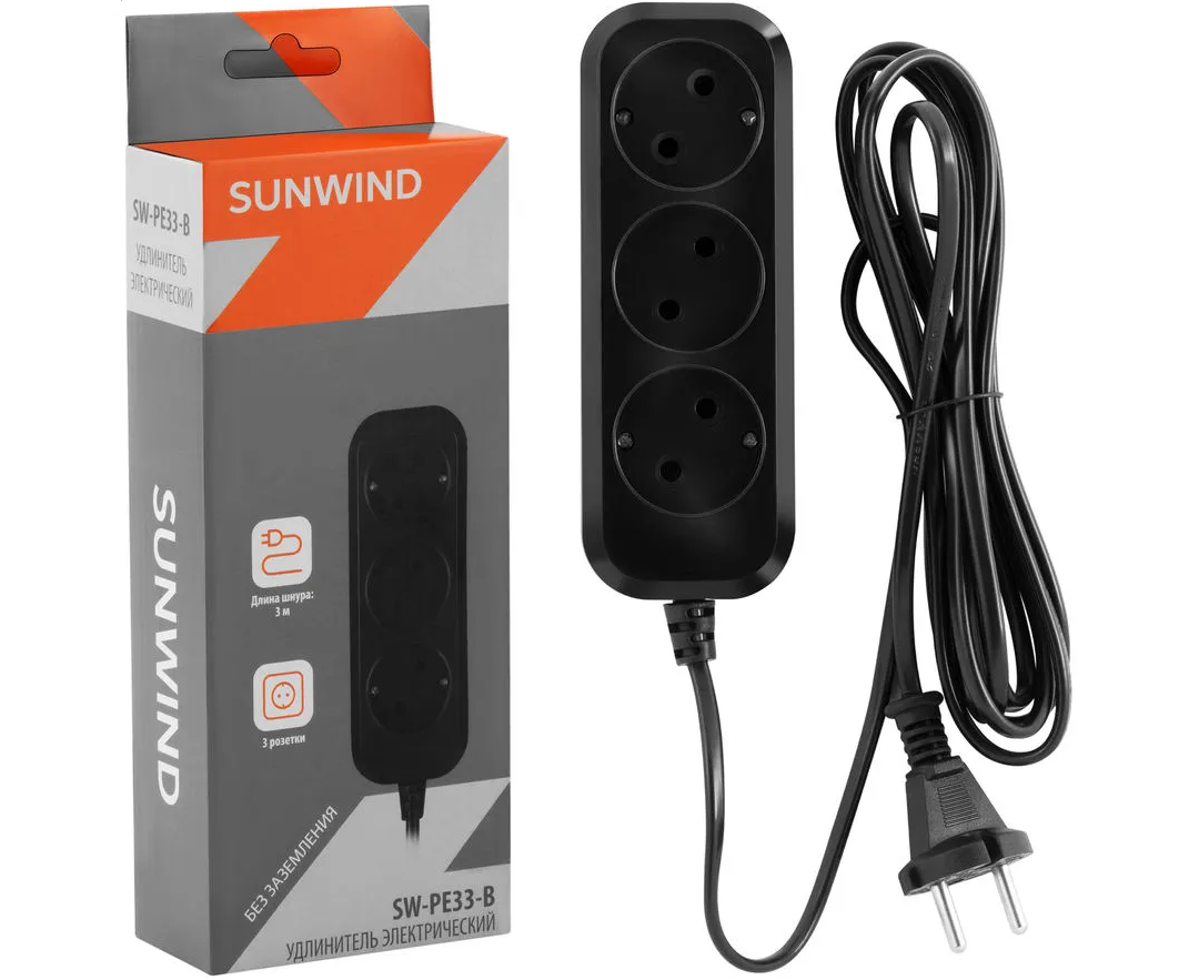 Сетевой удлинитель SunWind SW-PE33-B 3м 3 розетки черный