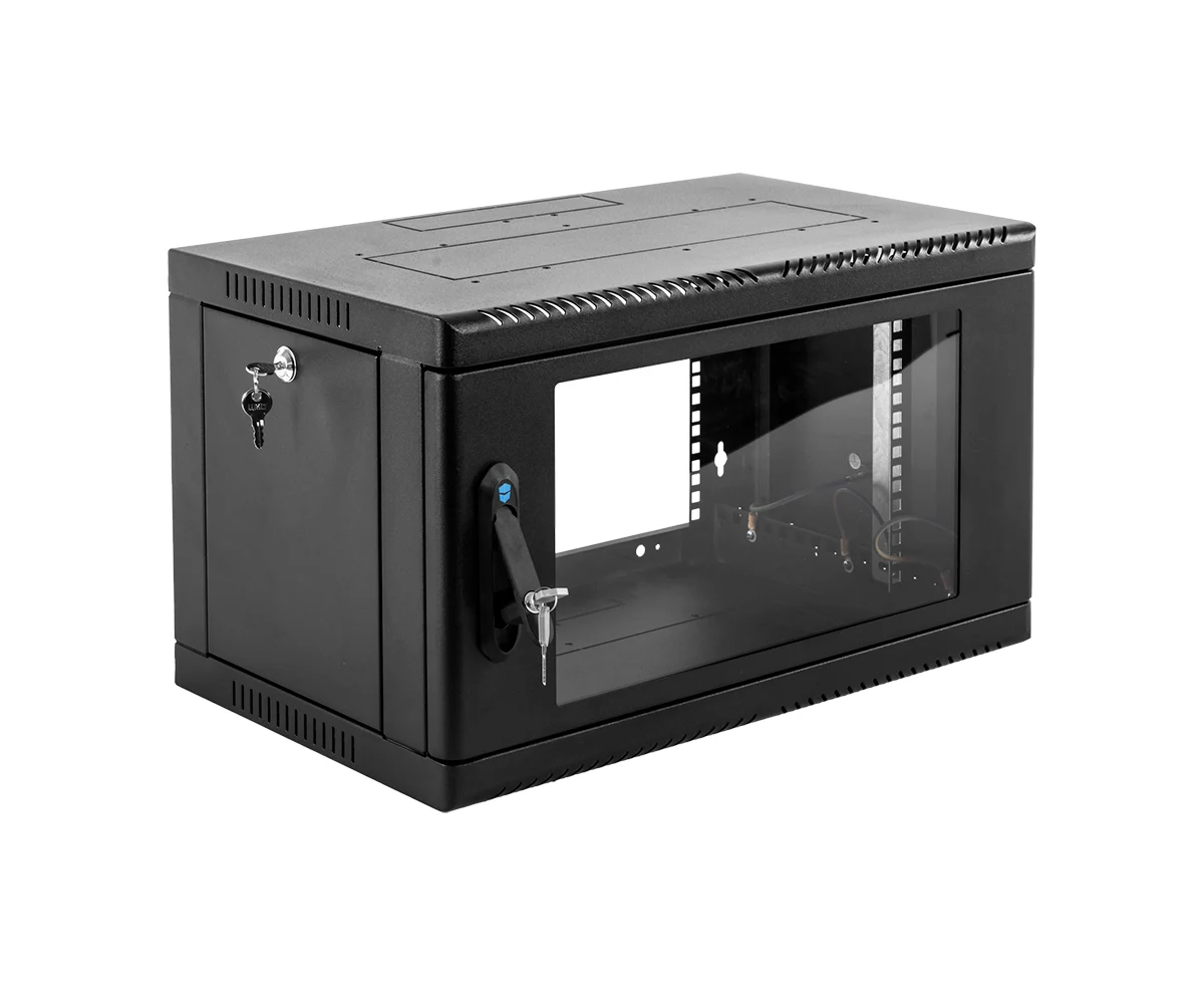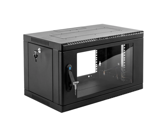 Шкаф коммутационный ЦМО ШРН-6.500-9005 настенный 6U 600x500мм пер.дв.стекл 200кг черный 470мм 180град.
