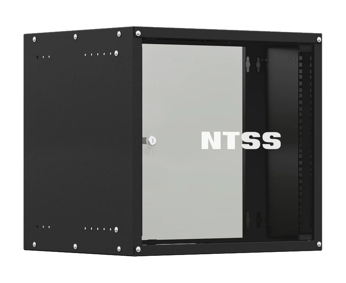 Шкаф коммутационный NTSS NTSS-W6U6060GS-BL настенный 6U 570x600мм пер.дв.стекл 60кг черный 500мм 18.8кг 220град. 370мм IP20 сталь