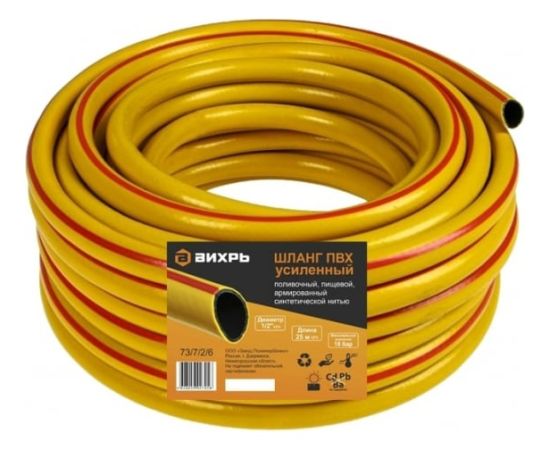 Шланг поливочный Вихрь 73/7/2/6 ПВХ усиленный, пищевой трехслойный армированный 1/2, 25 м (жёлтый)