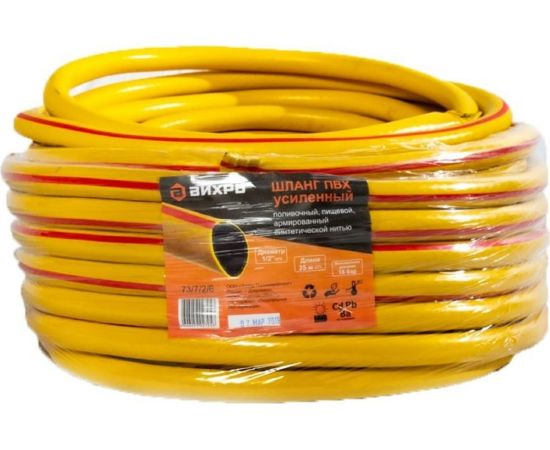 Армированный усиленный поливочный шланг Вихрь премиум, ПВХ, пищевой, трехслойный, 1/2", 25 м, жёлтый 73/7/2/6 предназначен для орошения дачного участка.
