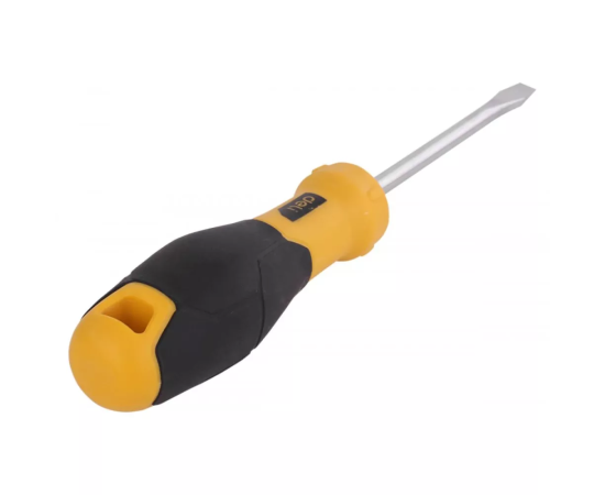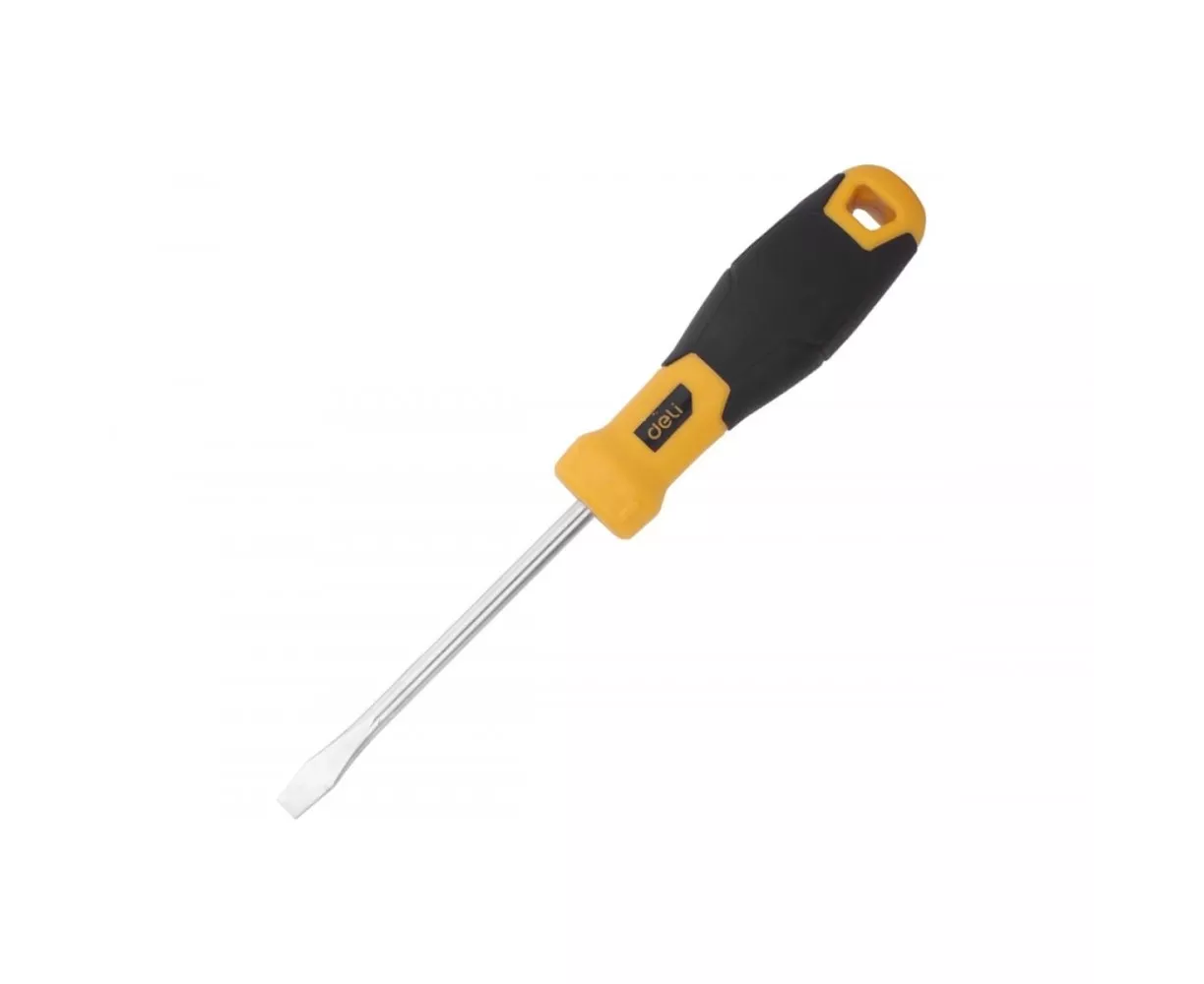 Шлицевая отвертка Deli DL6361001 6х100мм, материал: CR-V, двухкомпонентная ручка, хромированная