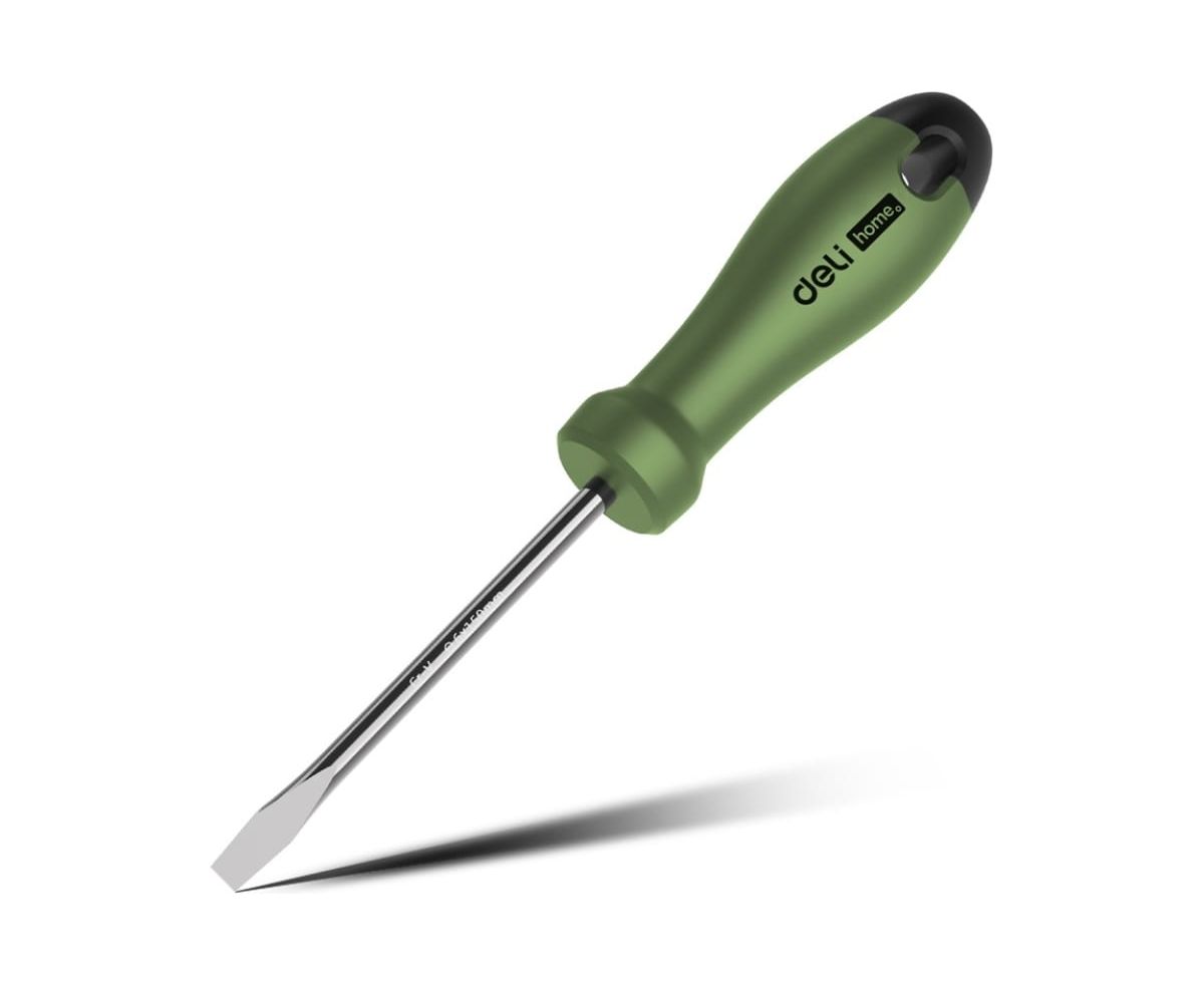 Шлицевая отвёртка Deli HT1106L Home Series Green 6x150мм, эксклюзивный дизайн, рукоятка из высококачественного софттач пластика