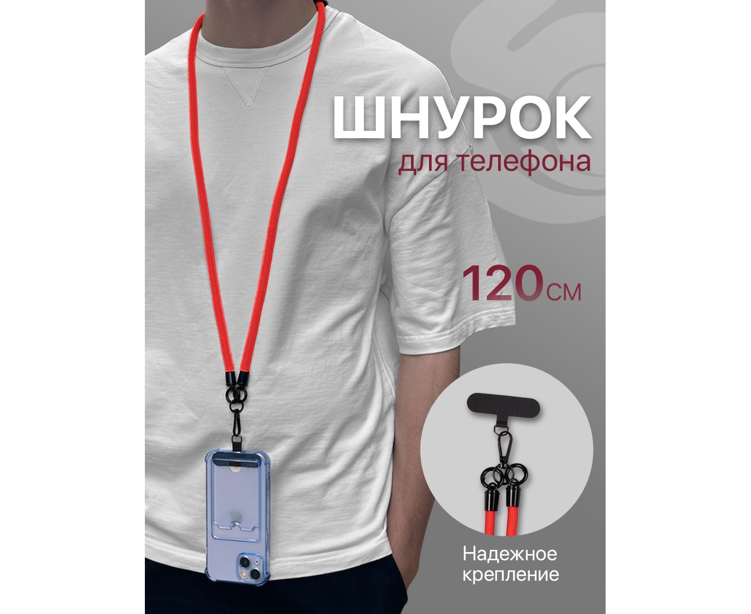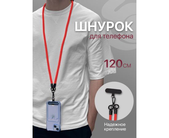 Шнурок для телефона на шею, для ключей, бейджа, пропуска, ремешок веревка через плечо, на руку, с карабином нейлоновый регулируемый, красный