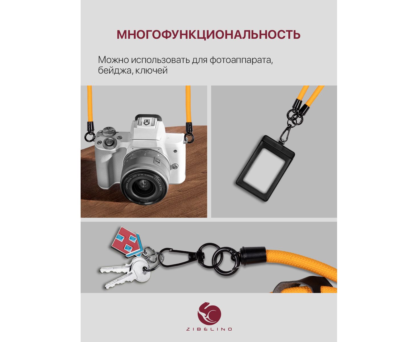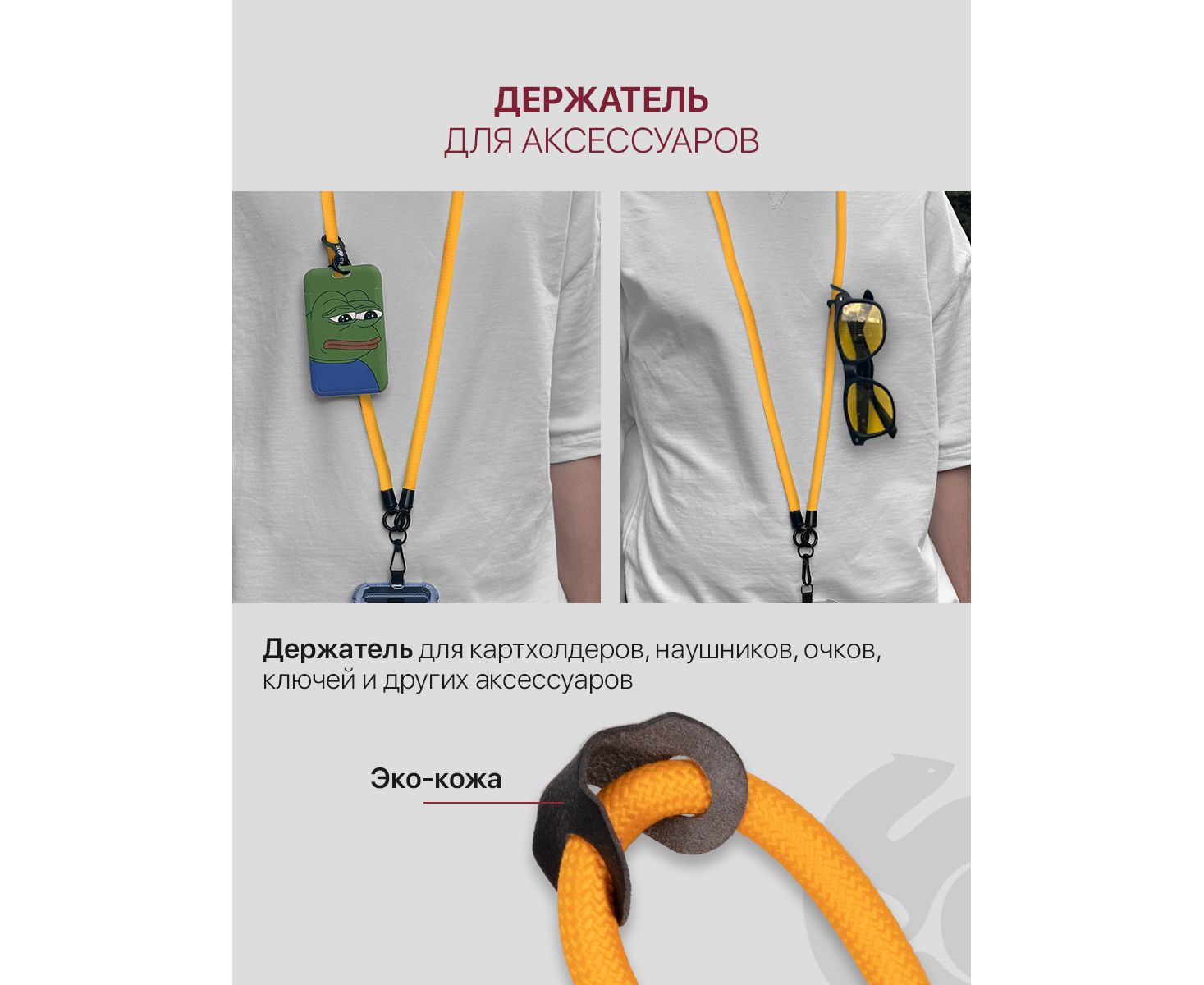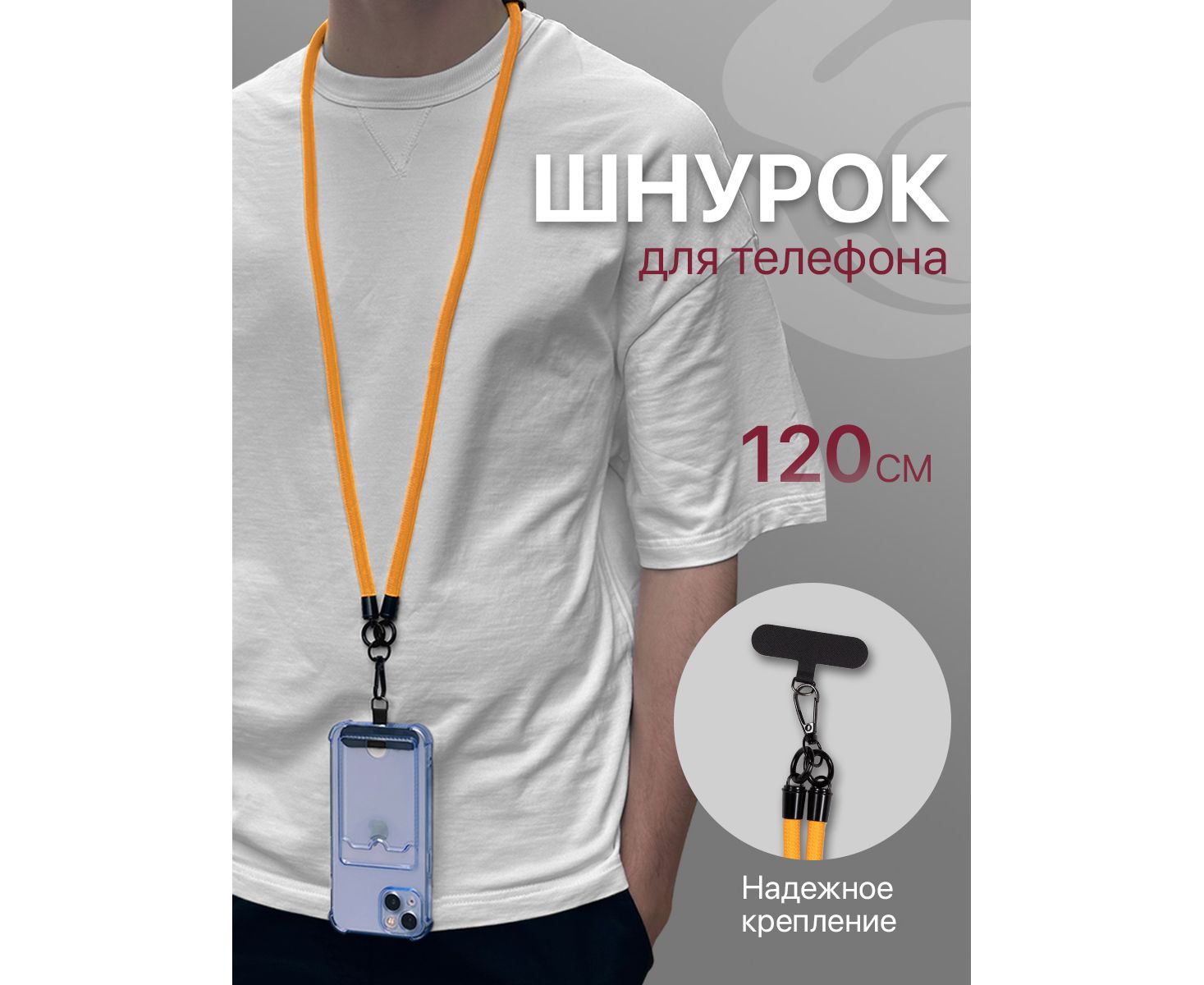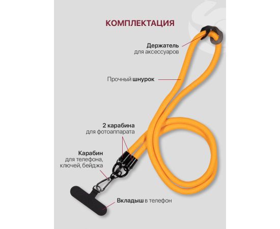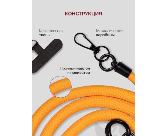 Шнурок для телефона на шею, для ключей, бейджа, пропуска, ремешок веревка через плечо, на руку, с карабином нейлоновый регулируемый, оранжевый