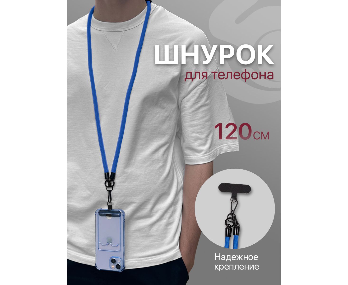 Шнурок для телефона на шею, для ключей, бейджа, пропуска, ремешок веревка через плечо, на руку, с карабином нейлоновый регулируемый, синий