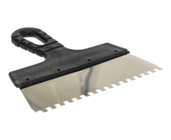 Зубчатый шпатель, нержавеющая сталь, пластиковая рукоятка 6х6 мм, 200мм Вихрь 73/3/2/26 - легкий и удобный инструмент, приспособленный для выравнивания различных растворов, в том числе: