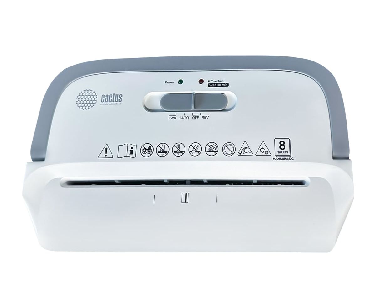 Шредер Cactus CS-SH-C4 белый (секр.P-4) фрагменты 8лист. 13лтр. скрепки скобы пл.карты