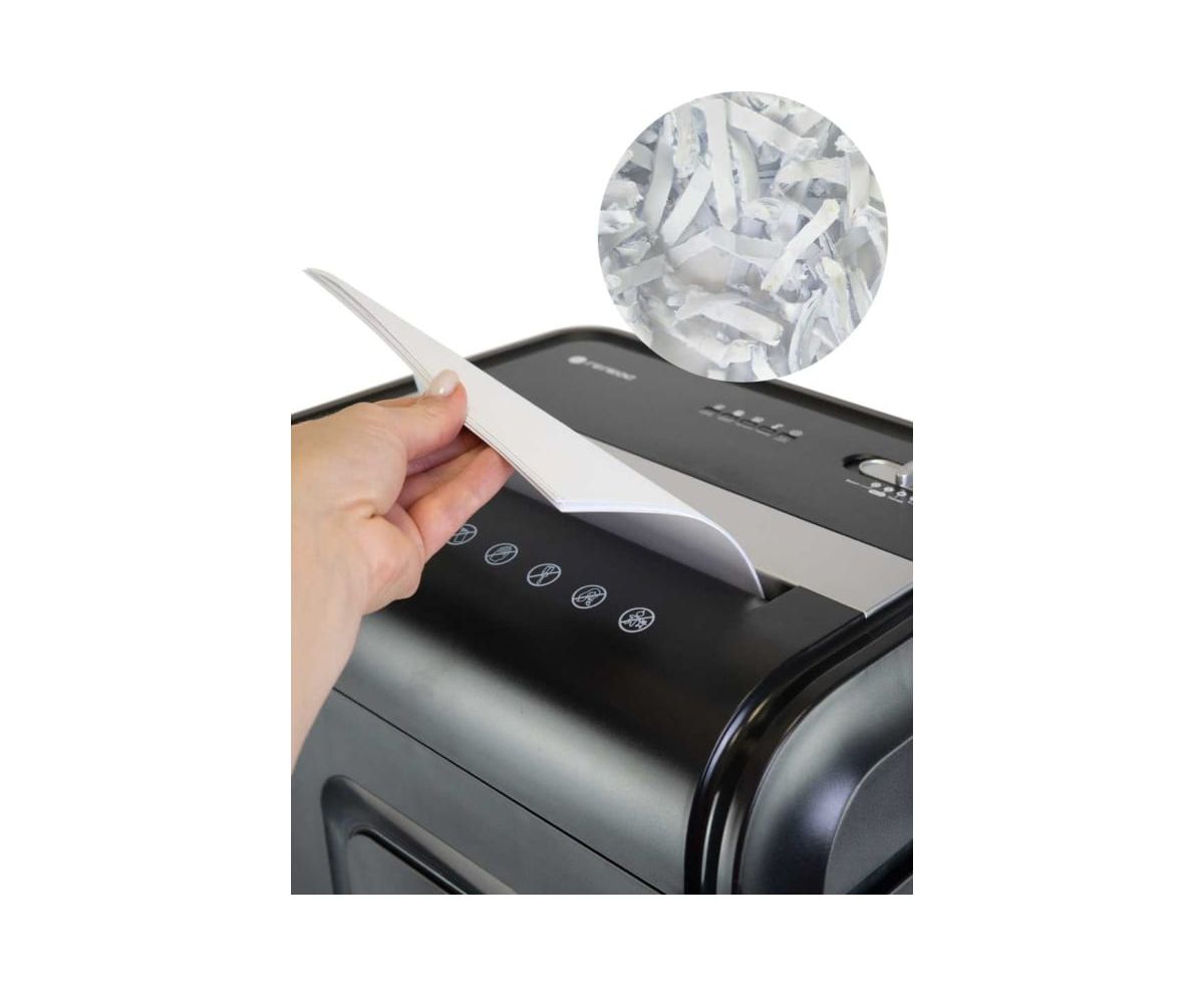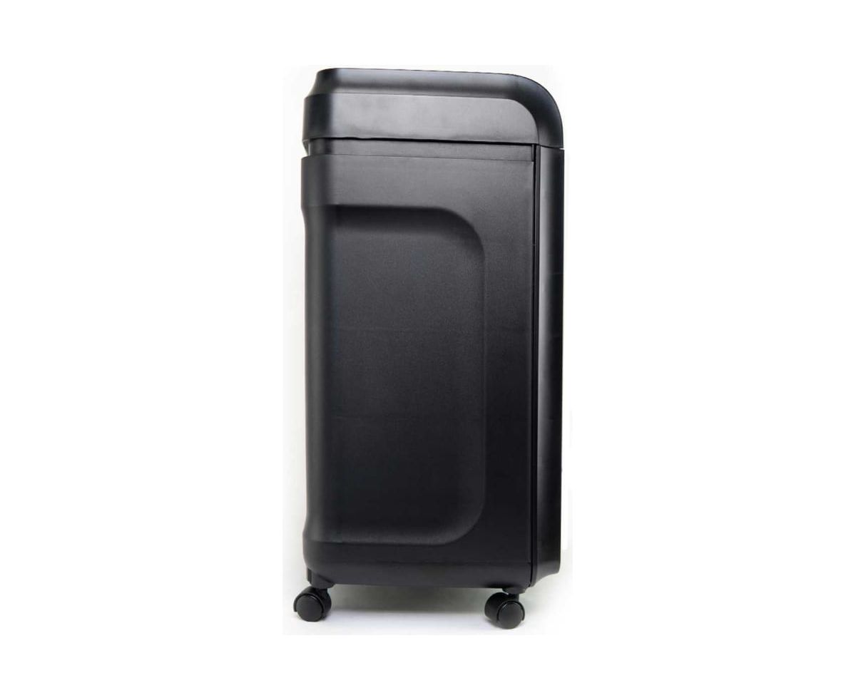 Устройство оснащено выдвижной корзиной с емкостью 32 литра, что позволяет вместить до 600 листов уничтоженных материалов. Габариты шредера составляют 385 х 280 х 593 мм, а также имеются колеса для легкого перемещения устройства из одного места в другое.