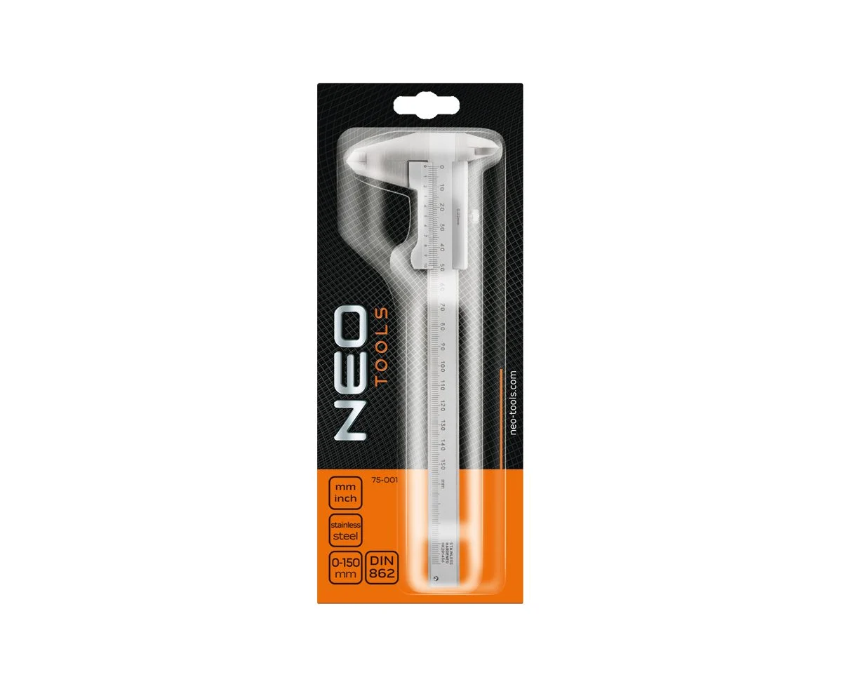 Штангенциркуль NEO Tools 75-001 с сертификатом DIN, 150 мм, нержавеющая сталь