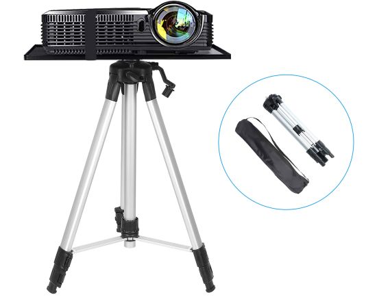 Штатив идеально подойдет для использования как больших, так и малых проекторов. Он имеет прочную алюминиевую конструкцию, которая обеспечивает стабильность и надежность при эксплуатации. Система телескопических ножек с фиксирующимися коленами позволяет регулировать высоту подставки в диапазоне от 50 до 140 см, что позволяет выбрать оптимальное положение для проектора.
