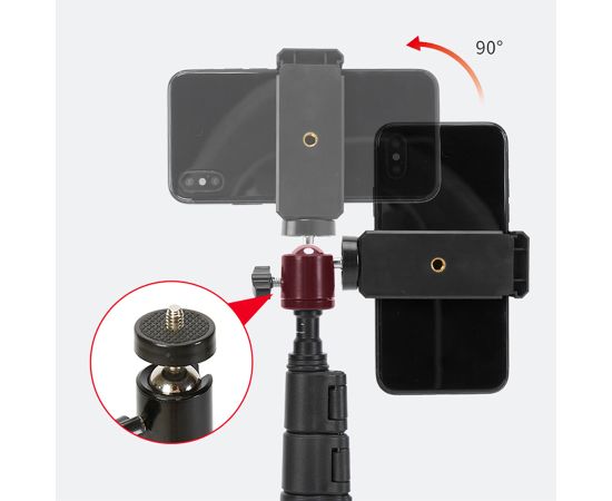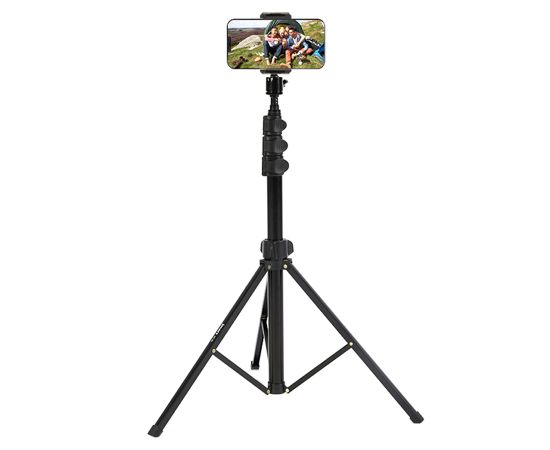 Устойчивый штатив Jmary MT-38 поможет вам снять идеальные фотографии и видеоролики. Это универсальна модель, которая подойдет для студийной фото, видеотехники и держателей с разъемом для крепления 1/4". На стойке можно зафиксировать фотоаппарат, смартфон или камеру, установить кольцевую светодиодную лампу или микрофон. Положение гаджета можно регулировать и выбирать удачный ракурс для съемки, чтобы вы в кадре выглядели идеально. С таким аксессуаром больше не придется переснимать кадр за кадром из-за дрожащих рук. В комплекте со штативом идет держатель для телефона с креплением для вспышки или микрофона. Преимущества напольного штатива для фото/видеокамер: Стойка сделана из надежного и износостойкого материала: металла. Ее вес составляет всего 430 граммов. На нее можно устанавливать гаджеты весом до 1 кг. Благодаря телескопической конструкции высоту штатива можно изменять от 51,5 см до 168 см. У Jmary MT-38 три ноги. Они раздвигаются и фиксируются в одном положении. На каждой ножке имеется прорезиненый наконечник, поэтому стойка устойчиво стоит на любой поверхности, а не скользит. Сверху штатива находится стандартный винт 1/4". На него можно закрепить раздвижной зажим для телефона из комплекта, фотоаппарат или видеокамеру, если в них предусмотрена резьба.