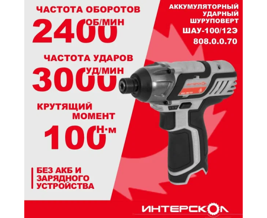 Шуруповерт аккумуляторный Интерскол ШАУ-100/12 Э АПИ-Т 808.0.0.70 без акк и ЗУ