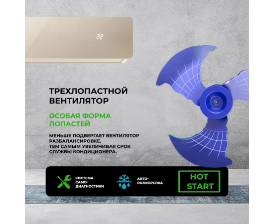 Особенности кондиционера: Автоочистка, Авторестарт, Антикоррозийное покрытие, Пульт ДУ, Регулировка направления воздушного потока, Таймер включения, Таймер выключения