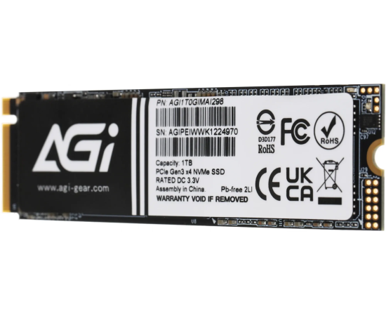 SSD AGI AI298 (AGI1T0GIMAI298-CB) 1TB, M.2 2280, PCI-E gen3 x4, NVMe, 3D NAND, 3200/1700 Mbs, 600TBW
