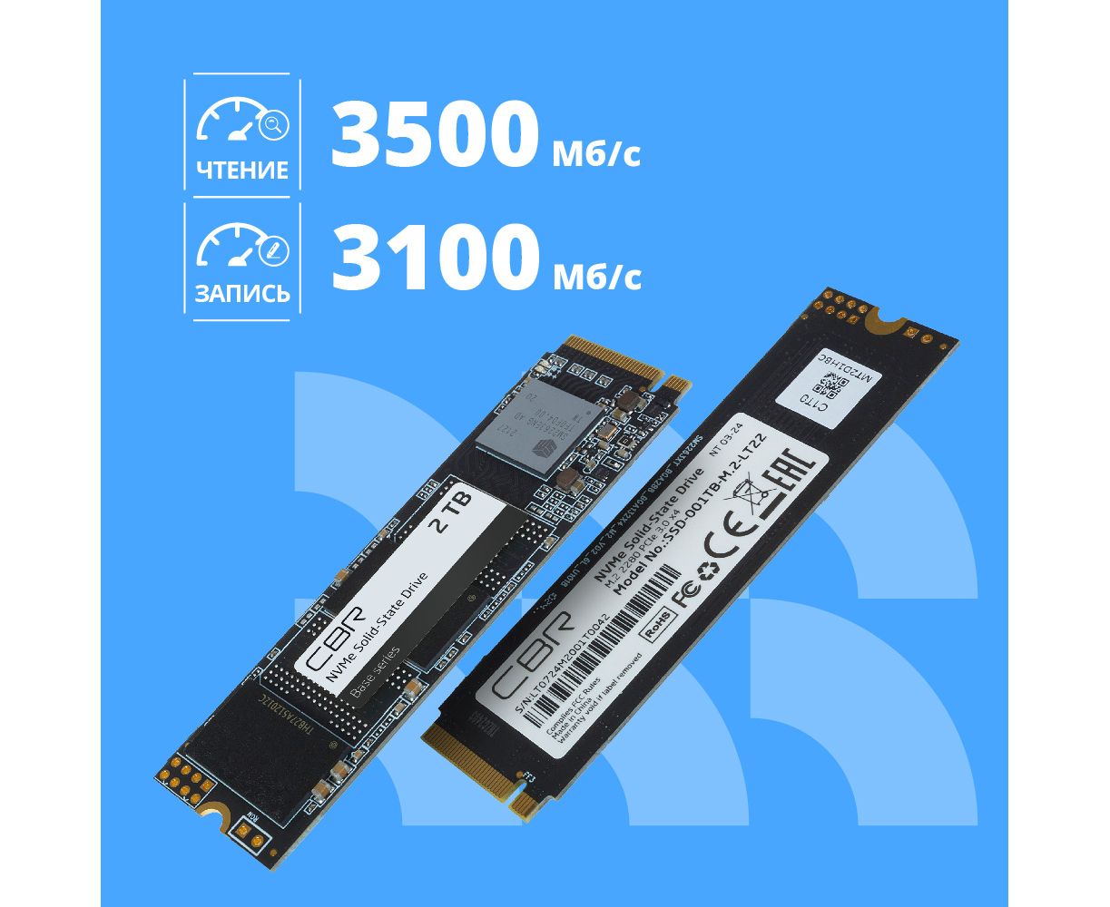 SSD CBR Base SSD-002TB-M.2-BS24b, 2048 GB, M.2 2280, PCIe 3.0 x4, NVMe 1.3, 3D TLC NAND, R/W speed up to 3500/3100