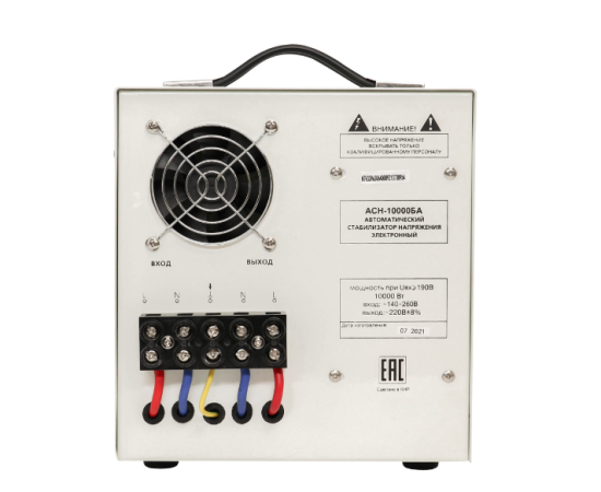 Стабилизатор релейного типа за счет своего принципа работы позволяет моментально реагировать даже на самые значительные и частые изменения напряжения в сети и предотвратить выход оборудования из строя. Номинальная мощность при входящем напряжении 190В составляет 10000Вт. Количество фаз = 1.
