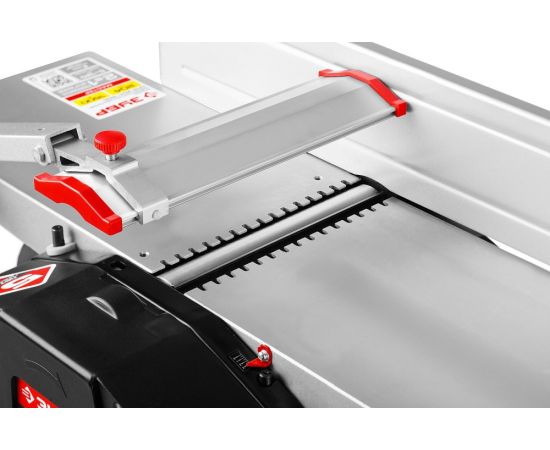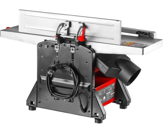Комплектация: Станок; Параллельный упор с креплением; Защитная планка с кронштейном; Пылесборник; Рукоятка; Фиксатор; Шаблон для установки ножей; Толкатель; Прижим - 2шт.; Набор ключей; Резиновая опора - 4шт.; Набор крепежа