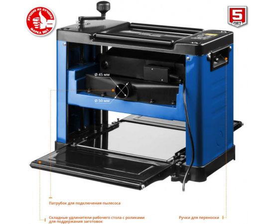 Особенности: Компактный переносной станок предназначен для одностороннего строгания заготовок из древесины в заданный размер по толщине. Удобен и прост в работе. Мощный двигатель с защитой от перегрузки и удлинители рабочего стола позволяют выполнить работу не только быстро, но и точно.