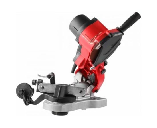 Заточной станок WORTEX GC109000011 предназначен для качественной заточки пильных цепей. Станок оснащен коллекторным двигателем с медными обмотками мощностью всего 90 Вт, благодаря чего отличается низким энергопотреблением и длительным ресурсом эксплуатации. Станок может затачивать любую цепь с любой формой режущего зуба, с любым профилем и любого назначения: для продольного или классического, поперечного пиления. Станок состоит из 2 узлов: верхняя часть подвижная, наклонная консоль с двигателем и заточным кругом; нижняя часть - прочная алюминиевая станина с поворотной головой, тисками и направляющими салазками для позиционирования и фиксации пильной цепи во время заточки.