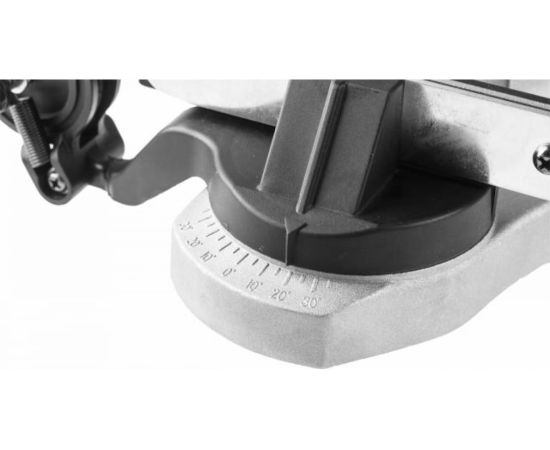 Станина станка надежно фиксируется на столешнице верстака с помощью 2 винтов или болтов с резьбой М10. Рабочая головка поворачивается на угол +/- 35 градусов для удобной работы.