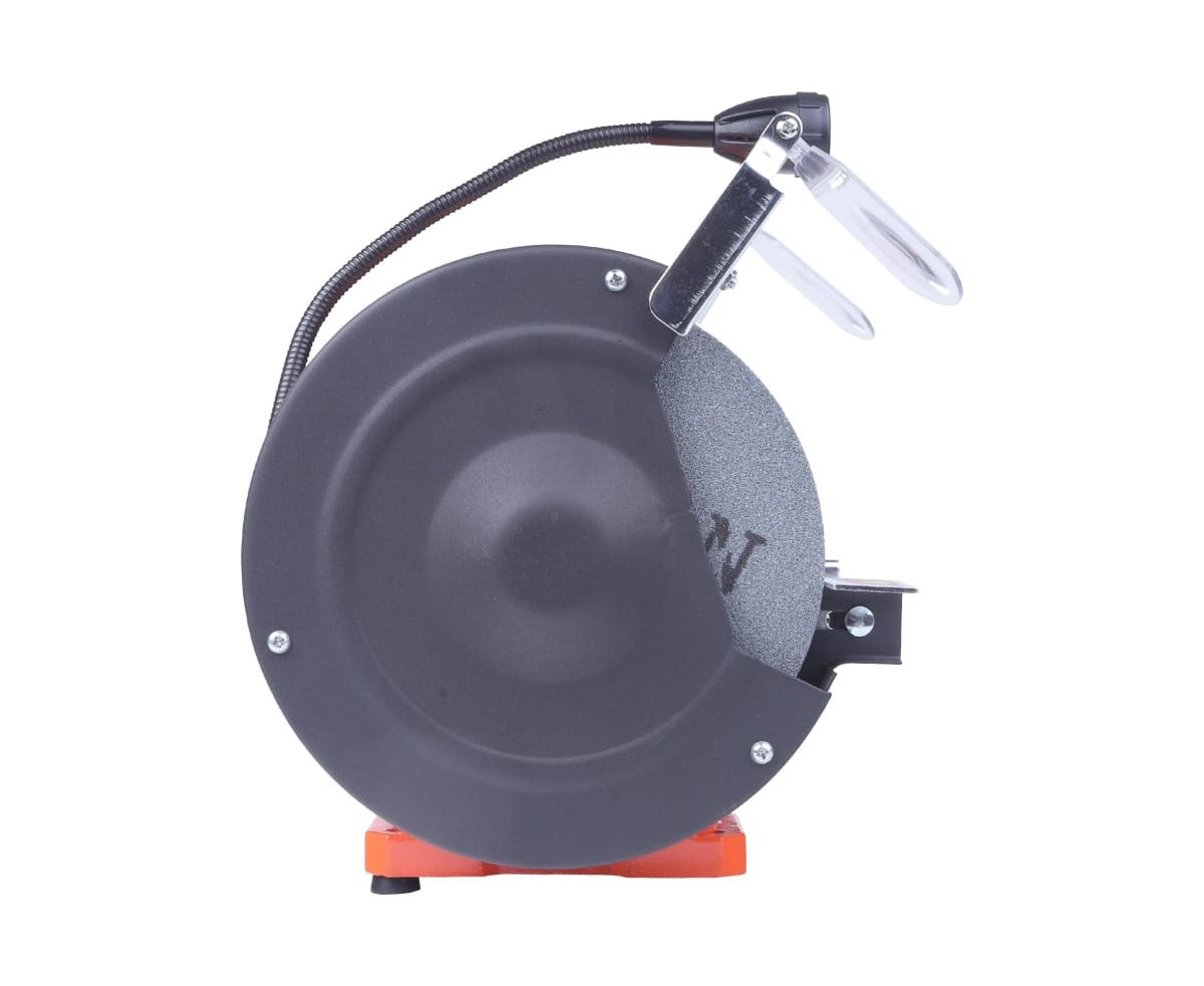 Заточной станок предназначен для заточки и сухой шлифовки металлических заготовок и режущего инструмента. Станок подходит для установки в мастерской и на предприятии мелкосерийного производства. Данная модель отличается увеличенным ресурсом двигателя. Обладает высокой точностью установки заточных кругов. Модель отличается небольшими габаритами, что существенно упрощает ее транспортировку. Возможность крепления к опорной поверхности. Прочный корпус с защитными искрогасителями поглощает шум и рабочие вибрации. Износостойкий сетевой кабель устойчив к перегибам и выдерживает низкие температуры. Надежный асинхронный двигатель практически не нагревается во время работы. Металлические кожухи обеспечивают защиту оператора при нарушении целостности точильного круга.