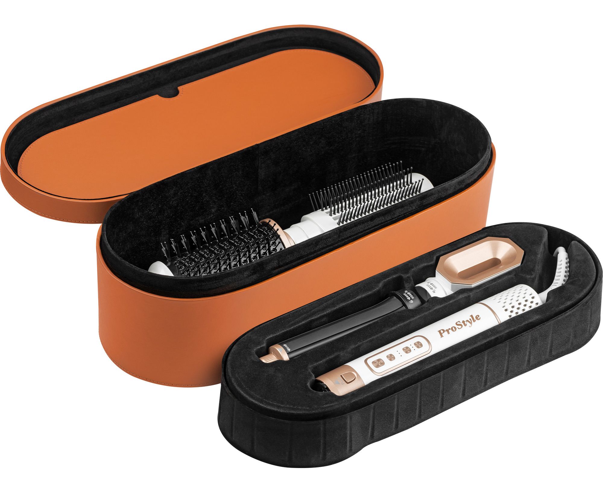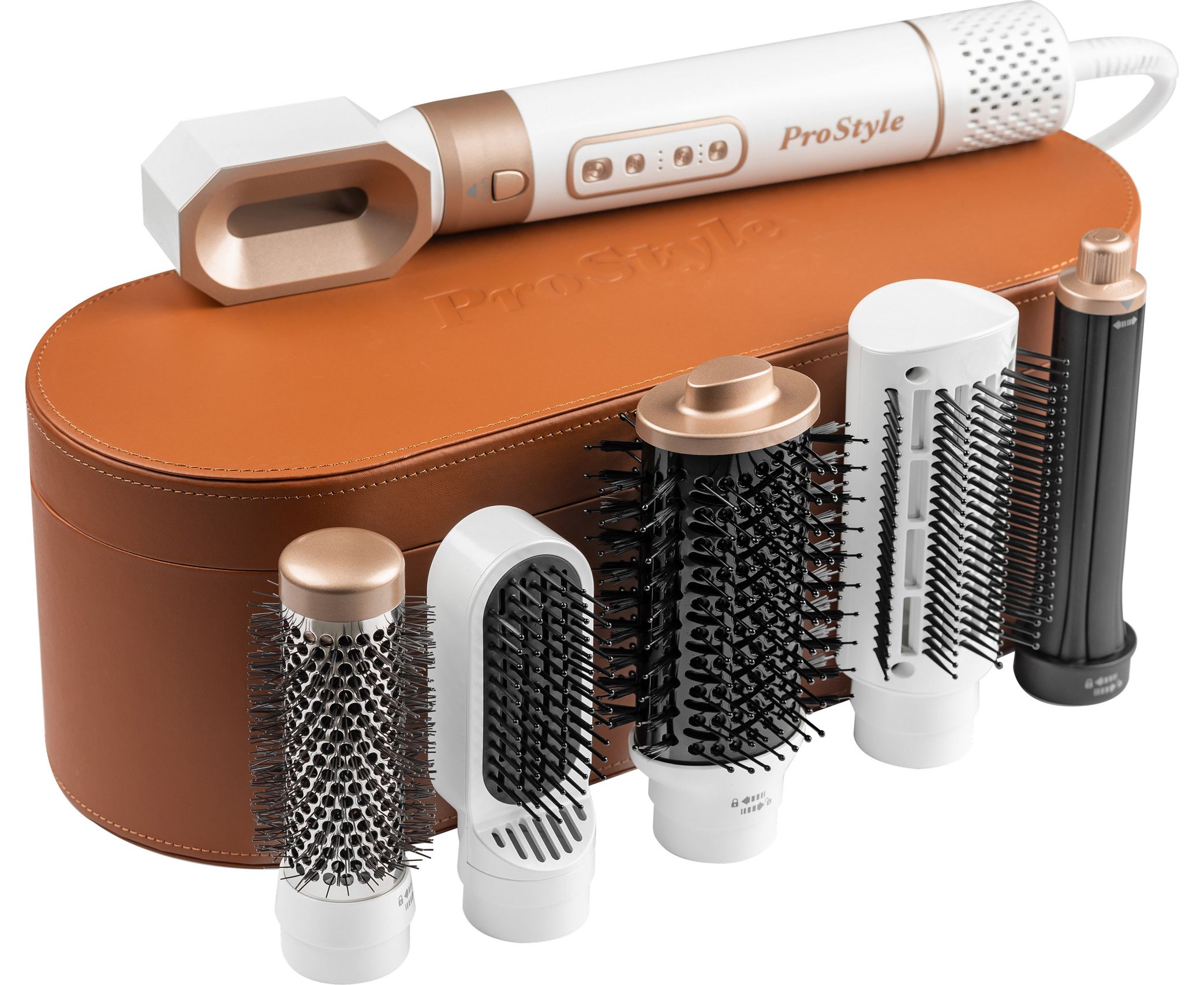 насадка для сушки волос, выпрямитель, насадка для локонов (диаметр — 3 см), насадка-щетка (диаметр — 3.8 см)