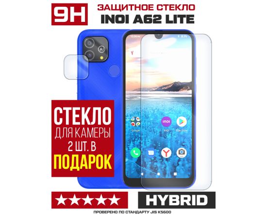 Стекло защитное гибридное для INOI A62 Lite + защита камеры(2 шт.)